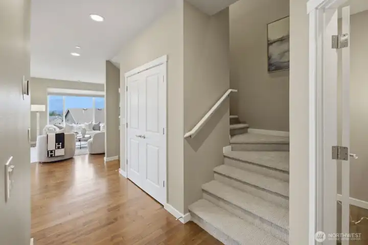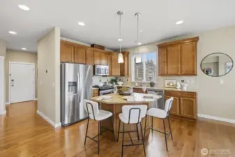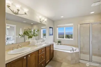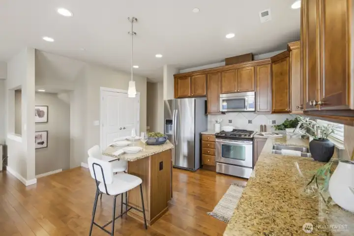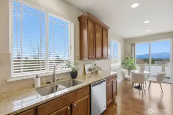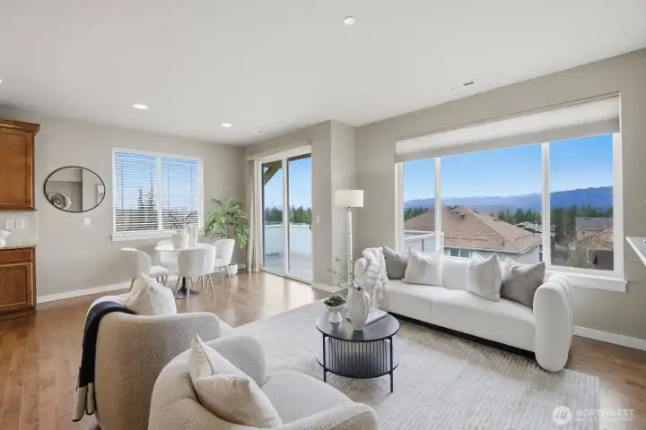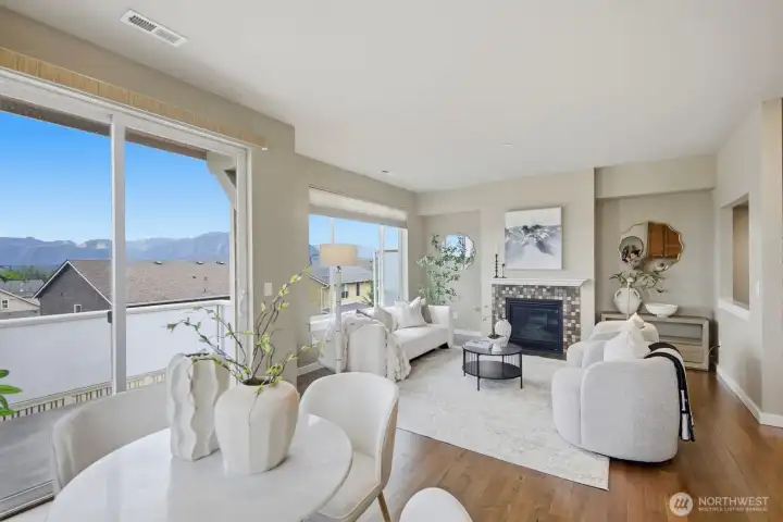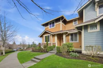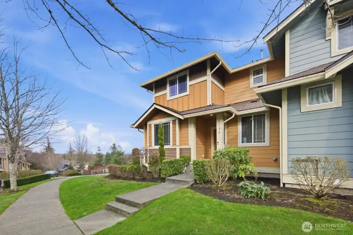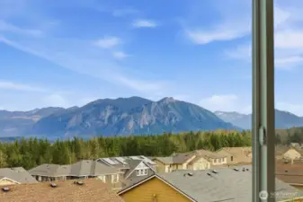 The stunning home has 3 bedrooms + an office/den and offers amazing Cascade Mountain views and a premium lot locations. This rare end unit provides exceptional privacy, abundant natural light, and a thoughtfully designed, highly versatile floor plan. The home features two spacious primary suites with spa-inspired bathrooms, plus a main-floor bedroom with a convenient ¾ bath—ideal for guests, multigenerational living, or a private home office. The home has brand new carpert, fresh interior paint, and seamless flow for both everyday living and entertaining. The bright corner kitchen is beautifully appointed with a center island, granite countertops, tile backsplash, stainless steel appliances, generous cabinetry, and breakfast bar seating. The inviting family room is anchored by a cozy gas fireplace and opens through sliding glass doors to a wrap-around deck with privacy glass railings—perfect for morning coffee, evening sunsets, and taking in peaceful mountain scenery. Additional highlights include a main-floor den or flex space, central A/C for year-round comfort, an attached two-car garage with extra storage, and a premium corner lot. Meticulously maintained, this move-in-ready home blends timeless finishes, modern convenience, and elevated Snoqualmie Ridge living at its finest.