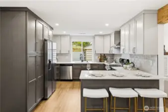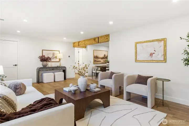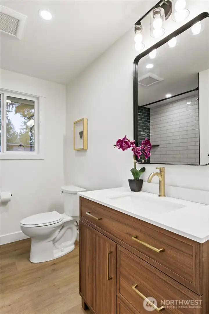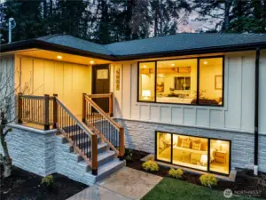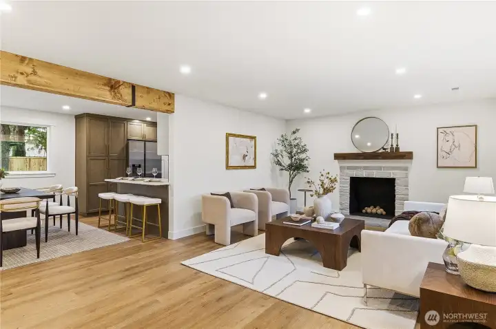 Step into an inviting home that has been completely renovated w/ thoughtful updates & timeless style, all set on a private lot in the heart of Mountlake Terrace! Set back from the road & surrounded by mature landscaping, this enticing home offers a rare sense of privacy, stylish detail & everyday convenience. Fully reimagined main level is light-filled, welcoming & truly feels BRAND NEW. This gorgeous remodel features an open layout designed for modern living, fresh paint, striking exposed beams & careful attention to every detail. Brand-new kitchen is the centerpiece of the home, showcasing an eat-in island, new countertops, beautiful cabinetry & seamless flow into the living & dining spaces - perfect for entertaining or relaxed daily living. A cozy fireplace anchors the living rm, creating a warm & inviting atmosphere. The main floor also includes a guest bedroom, a full hall bathroom, and a tranquil primary suite w/ a spacious, spa-like bath, offering a private retreat to unwind. The lower level adds exceptional versatility w/a spacious recreation room, a dedicated office space & an additional bedroom- ideal for guests, remote work or flexible living arrangements. Outside, enjoy the expansive, level backyard & large, beautiful patio surrounded by lush greenery, along with ample storage & parking. Just mins to the Mountlake Terrace Light Rail, I-5, SR 99, parks, schools, Alderwood shopping, movie theaters & dining, this home delivers comfort, style & unbeatable convenience.