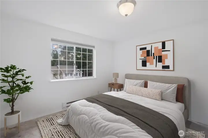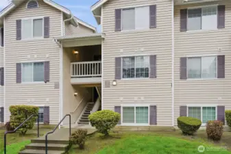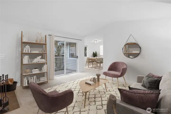 Experience the perfect blend of natural serenity and urban convenience in this top-floor Lake Forest Park retreat. Nestled in a lush, forested setting just minutes from Seattle, this home features an inviting living area highlighted by soaring vaulted ceilings, a cozy wood fireplace, and a sliding door leading to a spacious private balcony. The smart, efficient floor plan includes a primary suite complete with a walk-in closet and private ensuite bath. Enjoy the ease of in-unit laundry and the comfort of a peaceful neighborhood that feels worlds away while remaining close to everything. This 2-bedroom, 2-bath gem offers a rare opportunity to live in a tranquil, park-like atmosphere without sacrificing city accessibility.