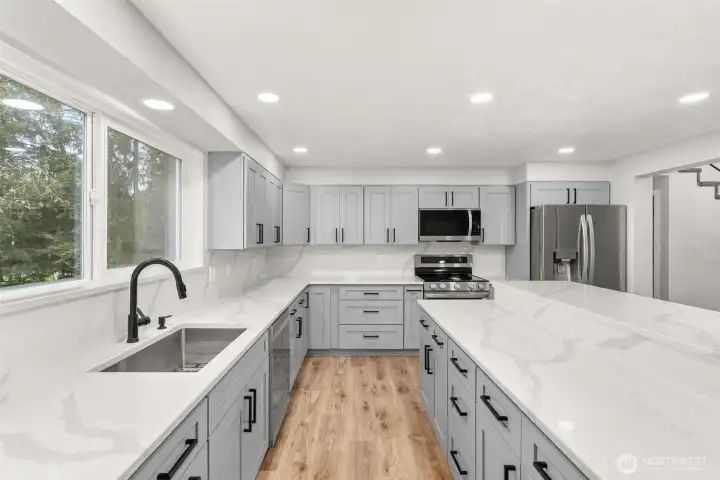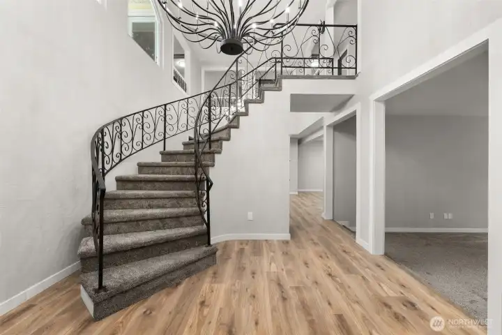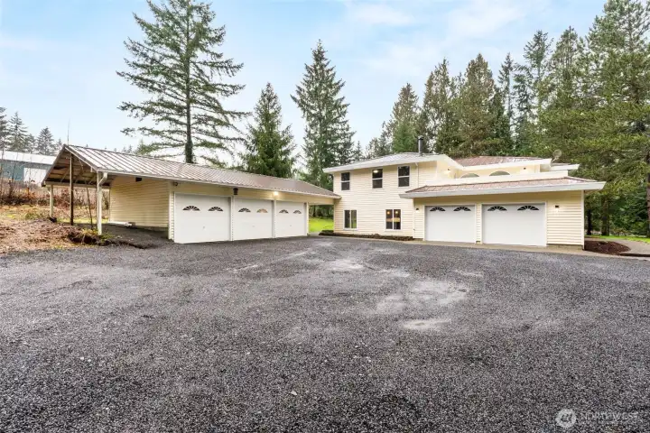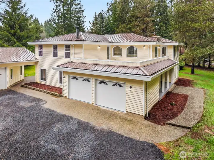 Like new and fully renovated, this quality home offers over 3,200 sq ft of well-designed living space. A sweeping spiral staircase welcomes you in the formal entry. The main floor features a custom kitchen with granite countertops, large island with storage and seating, dining area, and a spacious family room with wood stove for comfort and ambiance. A wet bar adds great entertaining space. Formal living room with large fireplace and half bath complete the main level. Upstairs you’ll find a large primary bedroom with 5-piece en suite and walk-in closet, plus three additional large bedrooms—each with walk-in closets. A large laundry room adds convenience, and the upper-level sundeck provides a quiet place to enjoy the surroundings. A new heat pump ensures year-round comfort. Set on over an acre with mature perimeter trees for privacy and an estate-like feel. Attached 2-car garage plus a large detached 3-bay garage with shop area and covered storage—ideal for hobbies, equipment, or extra vehicles. Conveniently located just 5 minutes to I-5 and positioned midway between Seattle and Portland. A great opportunity for space, privacy, and value.