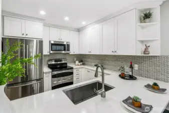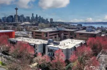 This beautifully updated condo offers the perfect blend of modern style and urban convenience. With a Walk Score of 93, enjoy unbeatable access to the best restaurants, bars, Seattle Center, Met Market, Space Needle and Climate Pledge. Inside, you’ll love the sleek kitchen with quartz countertops, updated bath, and recessed lighting throughout. The unit features easy access to the front door and elevator, plus a private patio ideal for relaxing or entertaining. Onsite amenities include an outdoor BBQ area, bike storage, additional storage, EV charging, workout room and a media lounge with outdoor dining spaces. Pet-friendly and perfectly located — this home delivers comfort, convenience, and the best of city living!