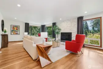 Contemporary 4 bed, 3.5 bath home with Lake Sammamish views from main living areas and chef’s kitchen. Spacious primary suite with fireplace and spa-style bath featuring soaking tub with lake outlook. Expansive view deck plus fully fenced backyard. Flexible floor plan with multiple living areas and finished lower level. Includes attached 2-car garage, skylights, security system and central air conditioning. Located in the West Lake Sammamish area of Bellevue near Lake Sammamish recreation and regional trail access. Approx. 0.8 mi to Bennett Elementary School, 1.4 mi to Interlake High School and near access to East Lake Sammamish Trail. Includes 3D walkthrough.