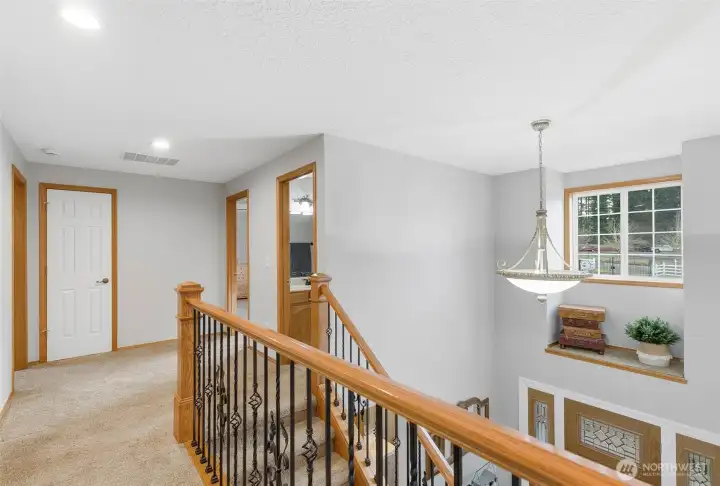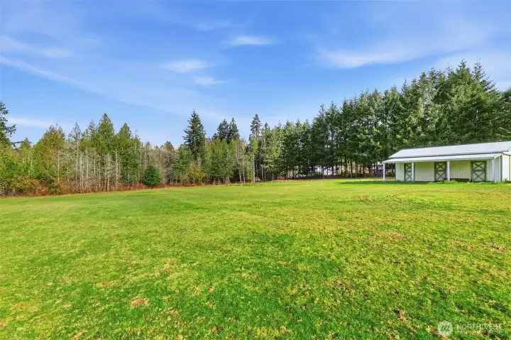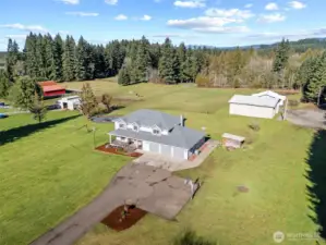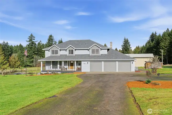 4.74 usable acres in Hockinson Schools, this well-maintained property offers a versatile floor plan, extensive outbuildings, and thoughtful updates throughout. Spacious primary suite features dual closets and private bath with jetted tub, shower, skylight, dual sinks, and quartz counters. Upstairs includes four additional bedrooms. Main level offers large living room with floor-to-ceiling windows, dining room, and kitchen with stainless appliances, built-in microwave, convection oven, large sink, and breakfast nook. Kitchen opens to family room with wood-burning stove, ceiling fan, and slider to outdoor living space. Large bonus room with built-ins and closet provides flexible use as office, playroom, or guest space. Additional features include laundry with sink and storage, abundant interior storage, newer HVAC (2025), composite decks (2024), roof approx. 10 years old, and oversized three-car garage. 48x42 shop includes 14x14 and 10x10 doors, loft storage, 220 power, RV hookup, and 40x15 lean-to. 35x35 barn with turnout doors and stall potential. City water and septic plus older well for irrigation or animals. Natural pond with fountain, koi, and goldfish completes this peaceful, functional acreage property.