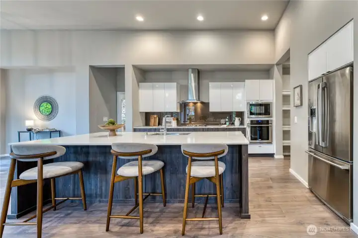 Set on a cul de sac in desirable McCormick Woods, this refined home balances clean design and thoughtful livability in a polished, single-level, open-concept layout. Off the entry, there’s a comfortable flex space for home office, study or third bedroom. Gathering space includes an expansive kitchen with luxurious walk-in butler’s pantry. Light, bright living room features cozy fireplace and glass doors with transoms, leading to a generous deck with outdoor fireplace. Privacy-promoting split-bedroom layout features tucked-away primary retreat with walk-in closet, spa-inspired bath. Second en suite bedroom is perfect for guests or multi-gen households. True lifestyle community features parks, trails, tennis, pickleball, basketball and golf.
