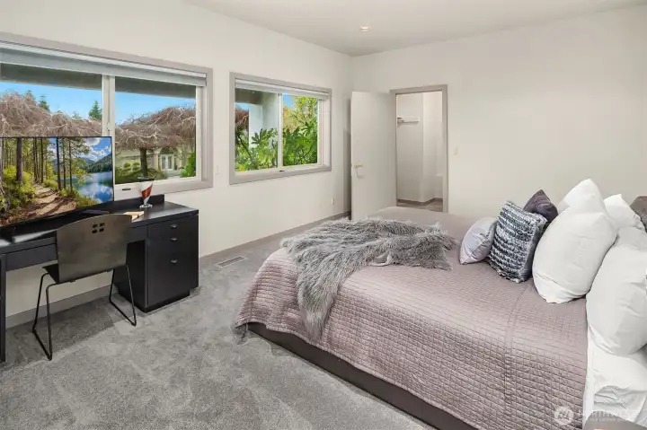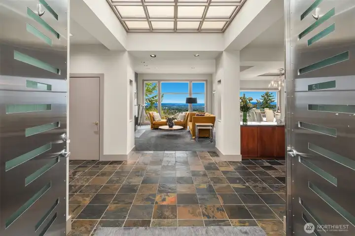 A vision imagined by renowned architect Curtis Gelotte and expertly crafted by celebrated custom builder Don Bender, this signature Lakemont residence commands breathtaking panoramic views of Lake Washington, Lake Sammamish, Mount Baker, and the Downtown Bellevue skyline. Northwest contemporary design defines the home, with clean lines, expansive windows, and meticulous attention to detail throughout. The sumptuous main-floor primary suite offers a private retreat, complete with a cozy gas fireplace, dedicated view deck, spa-inspired updated bath with heated floors, and an expansive walk-in closet outfitted with California Closets. Designed for both comfort and functionality, the home is equipped with a Smart Home automation system allowing remote control of security, lighting, and HVAC. The generous walkout lower level features a spacious rec/bonus room, three additional bedrooms, 1.75 bathrooms, an office, and a hobby or workout room, with direct access to the rear yard. Outdoors, enjoy a level lawn and a professionally designed putting green, ideal for relaxation or play. Spanning the main living level, the 700+ square foot Brazilian walnut view deck provides a front-row seat to truly jaw-dropping vistas-an exceptional setting for entertaining or quiet moments alike. A rare blend of architectural distinction, livability, and unforgettable views in one of Lakemont’s most desirable settings.