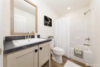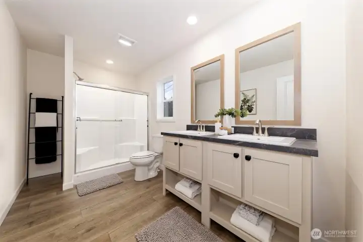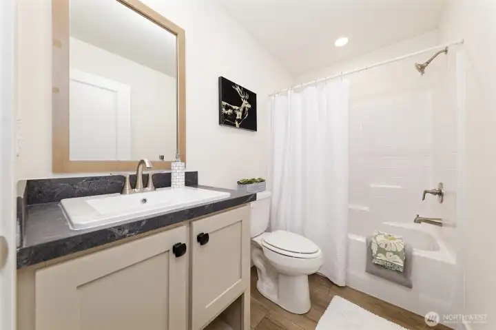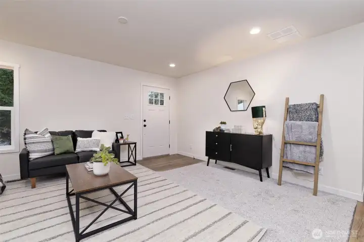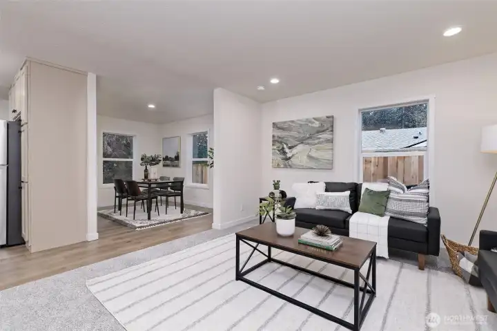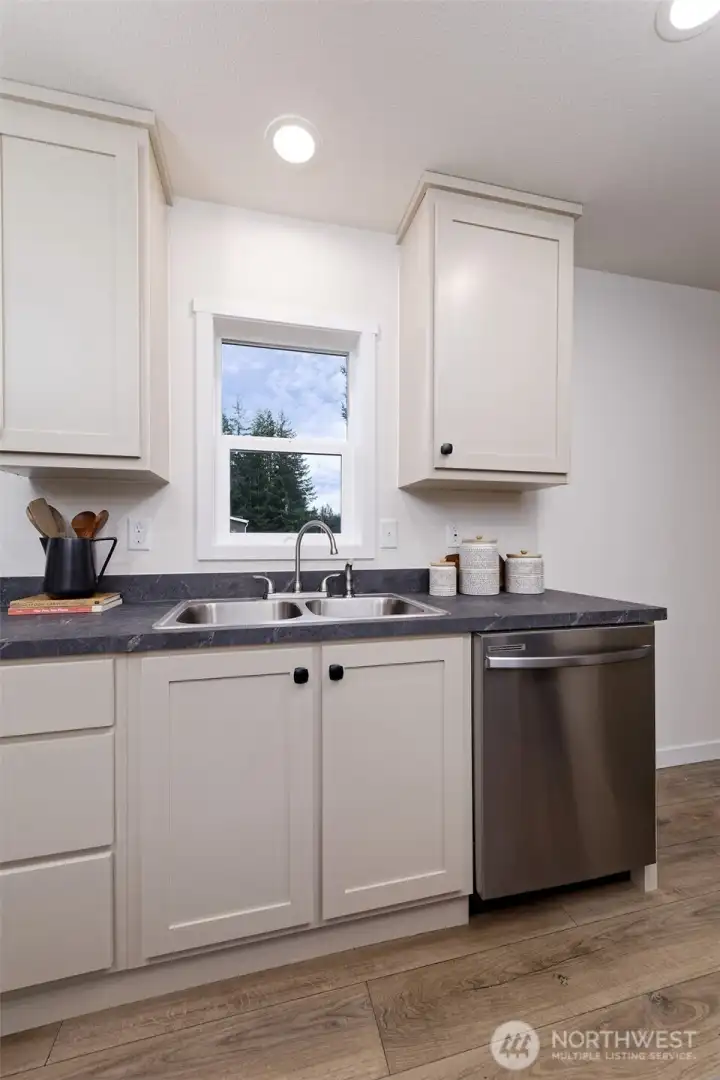 Nestled in the sought-after Timberlakes HOA, this NEEM-certified Under Pressure Tempo Series new Construction home blends modern efficiency with the relaxed feel of a private lake community. The 1,296 sq. ft. layout lives large with 3 beds, 2 baths, an open concept design, stainless appliances, and a generous island perfect for gathering. Outside, the property shines with rock walkways, bark landscaping, privacy fencing, ample parking, and inviting front and back decks. Timberlakes residents enjoy two private lakes with a community boat launch, a private Puget Sound launch, plus access to multiple private parks and playgrounds—ideal for outdoor living. Newly hydro-seeded lawn will fill in over the next 30–60 days, completing this move-in-ready retreat.