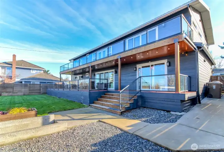 Welcome to this exceptional Northwest Contemporary residence boasting panoramic Puget Sound views and the perfect blend of modern style and Pacific Northwest living. Meticulously updated with clean lines, abundant natural light, and high-end finishes, this 5 bedroom/3.25 bath home (~3,120+ sq ft) sits on an oversized lot (9000sf) in highly desirable North Tacoma. Possible ADU? The open main level is an entertainer’s dream; gourmet kitchen with a large island, expansive living/dining areas, gas fireplace, and phenomenal access to two levels of decks that frame the stunning views. An oversized primary suite with walk-in closet and spa-like bath, plus a versatile upper loft with second fireplace, offer flexible space for everyone. EV charger included. The 1 car detached garage off of the alley has additional parking options and storage. Best of all: An assumable VA mortgage at just 4.75% — far below current market rates (~6%). Qualified buyers can assume this low-rate loan, unlocking significant monthly savings and making this home even more affordable long-term (assumption subject to VA/lender approval). Just minutes from Point Ruston’s waterfront dining & shops, Point Defiance trails/zoo, and the charming Proctor District — this is Tacoma living at its finest.