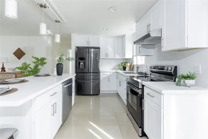 Beautifully updated rambler with stylish open concept living in the heart of South Seattle. The stunning brand new kitchen features quartz countertops, new stainless steel appliances, and a designer tile backsplash. Fresh interior and exterior paint, new flooring, and new gutters add comfort and peace of mind. Step outside to a fully fenced backyard oasis with a 200 sq ft detached office/studio—perfect for remote work or extra storage—and a charming covered gazebo, ideal for entertaining. Just 2 blocks from light rail. Truly move-in ready!