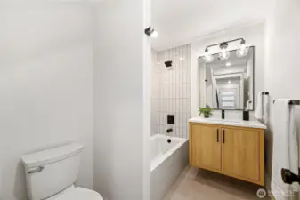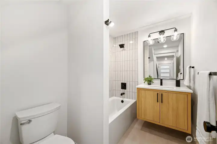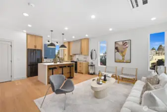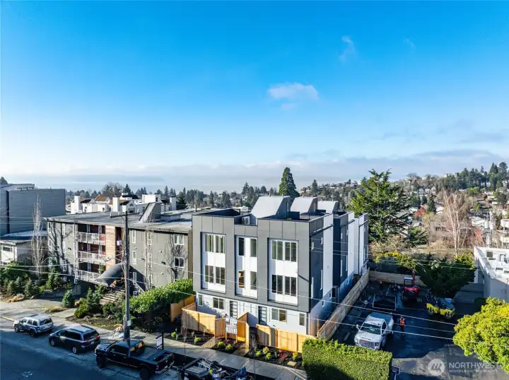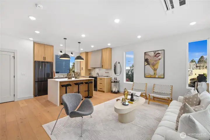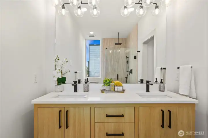 Nestled in the heart of the Junction, this brand-new home combines luxury and convenience. Just steps from shops, restaurants, and parks, it offers stunning views of Elliott Bay from both the living room and private rooftop deck, ideal for relaxing or entertaining. Inside, enjoy a chef’s kitchen with a sleek island, Roman clay finish on the hood, black appliances, and an apron sink. The open concept living area features a cozy fireplace and hardwood floors. The powder room adds sophistication with bold accent walls, while the master suite offers a luxurious ensuite with double vanity, tile work, and a spacious shower.A perfect blend of design, finishes, and location—this home is a true gem!
