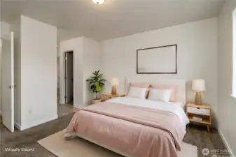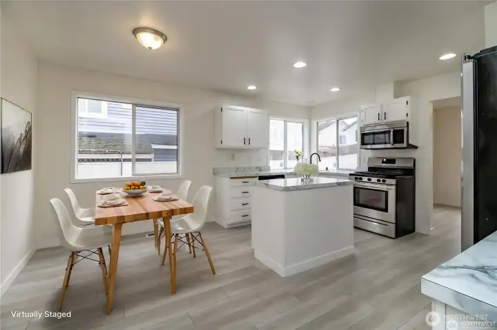 Stunning remodeled home in Tacoma. This home features 3 bedrooms, 2.5 bathrooms, with vaulted ceilings. Gleaming new wood laminate flooring, new white trims, and new paint cabinets throughout. Open and bright floor plan with lots of natural light, new laminated countertops in the kitchen and bathrooms. New interior paint, new toilets, new kitchen sink and bathroom sinks, and new vanity in the bathroom. A beautiful gas fireplace in the living room. Spacious primary room with double sink vanity and walking closet. Roof replaced in 2022 and furnace replaced in 2023. Backyard with new patio cover, built in fish pond, garden/flower area, and a nice patio for BBQ and entertaining. Conveniently located near freeways, parks, schools, and shopping plaza.