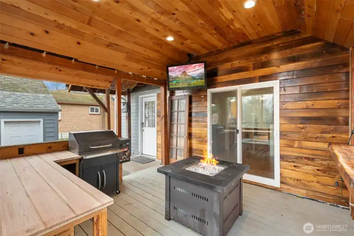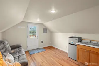 Situated blocks away from PLU this charmer features an ADU and 2-car detached garage!! Main house is warm & inviting w/ updates and period details including original hardwood floors, coved ceiling & gorgeous archway. Filled with character & intentional touches including repurposed materials and exposed cedar finishes throughout. Features include living room with wood-burning fireplace, primary bedroom with custom closet w/ shelving, lighting & electric fireplace, big kitchen with gorgeous coffee bar, unbelievable covered-deck with tons of space to entertain, relax & enjoy fresh air all year long. The ADU has a nice flow with beautiful hardwood floors, open-concept kitchen, separate sleeping space, and 3/4 bath. The detached garage is a mechanic's/woodworker's dream with workbench, air filtration system, and loft for storage. Additional features include: hardie plank siding, newer gutters, gas furnace installed in 2021, fully-fenced backyard, hot tub, 8x8 shed & HUGE driveway w/ room for multiple cars and RV parking.