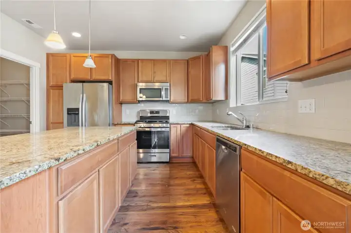 Spacious 5-bedroom home with brand-new updates! Freshly installed carpets on the stairs and upper level, a brand-new gas range, and a brand-new disposal. This thoughtfully designed home features laminate wood flooring, slab granite countertops, and stainless steel appliances, including the new gas range. The open-concept main floor includes an additional bedroom that can serve as a home office, guest room, or comfortable space for multigenerational living. Conveniently located near parks, shopping, schools, and Green River College. Don’t miss this opportunity—schedule your showing today!