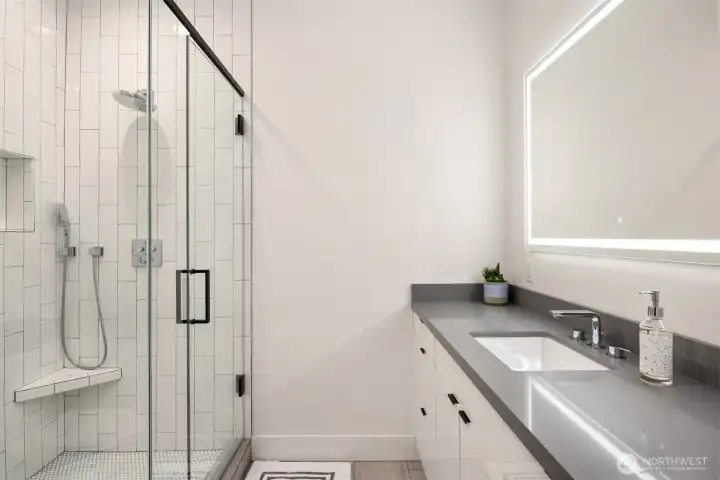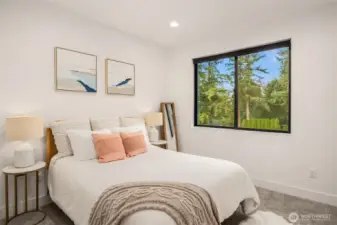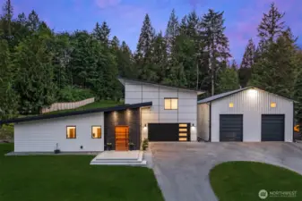 [MODERN ARCHITECTURE MEETS PACIFIC NORTHWEST] Set on an acre in sought-after Woodinville within the acclaimed Northshore School District. Surrounded by towering evergreens, this striking residence showcases bold rooflines, clean & contemporary with warm wood accents for a refined yet welcoming presence. The primary suite is thoughtfully positioned on the main level, offering privacy, ease, & luxurious everyday living. Each of the three bedrooms features its own dedicated bathroom, creating an ideal layout for guests, multigenerational living, or executive comfort. Expansive windows & dramatic ceiling lines flood the home with natural light, while custom cabinetry & elevated finishes reflect thoughtful craftsmanship throughout. Radiant floor heat provides year-round comfort, a whole-home generator ensures reliability, & wiring for electric vehicle charging blends convenience with forward-thinking infrastructure. Cantina accordion doors open the main living space to create a seamless indoor-outdoor flow—perfect for entertaining or enjoying the serene natural surroundings. The fully heated & insulated 36x60 shop with 220 power is a defining feature—ideal for car collectors, RV storage, recreation, business use, or creative workspace. 30 amp rv electrical hookup. The scale & infrastructure elevate this beyond a traditional luxury home. Architectural presence. Private acreage. Exceptional utility.