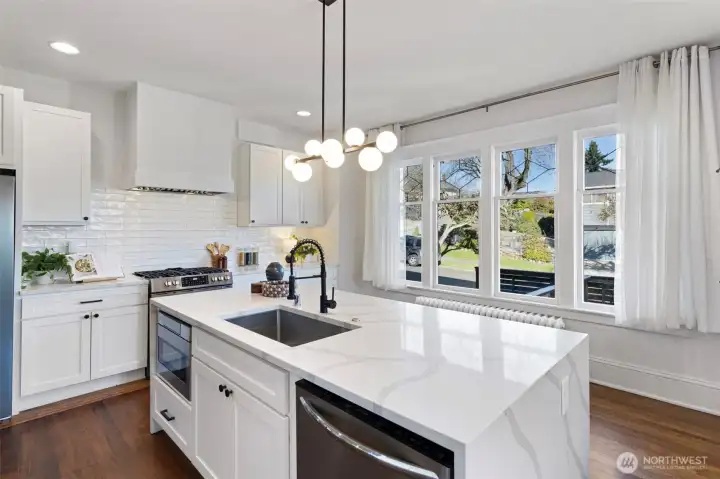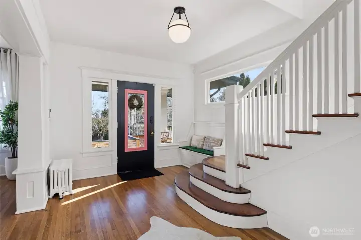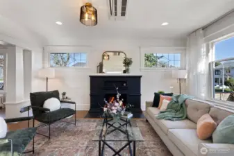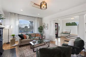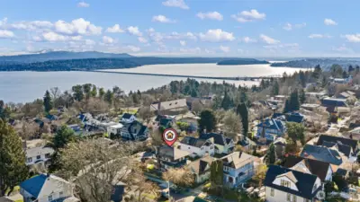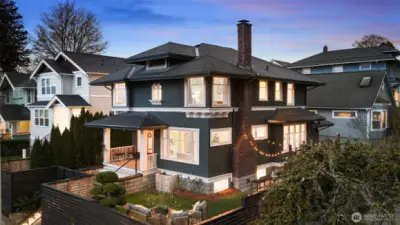 Located in the heart of Leschi, this stately four square has been been tastefully renovated for modern living. Enjoy light filled spaces on all levels of this 5 bedroom, 3 bath home which blends period details with elevated finishes. Well appointed layout has a seamless flow between rooms. Modern kitchen with large island and bar stool seating plus formal dining area makes for easy entertaining. Features include a cozy fireplace, hardwood and fir floors, original millwork, built-ins and leaded glass details. Fresh interior paint throughout. Large primary includes sitting area, ensuite bathroom and walk-in closet. Enjoy partial views of Lake WA, the Cascades and Mt. Rainier. Lower level has ADU potential for added flexibility or income generating. Or use the spaces for WFH office or home gym. Updated systems plus heat pump with AC for year round comfort. Perched on an elevated corner lot with large covered front porch. Fully fenced yard, patio areas and private landscape design features fruit trees, garden beds and a variety of flowering plants. 3+ off street tandem parking spaces. Easy access to Lake WA, parks, coffee, restaurants and shops. Close proximity to downtown Seattle and Eastside. A rare opportunity to own a true Seattle Classic.