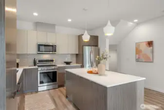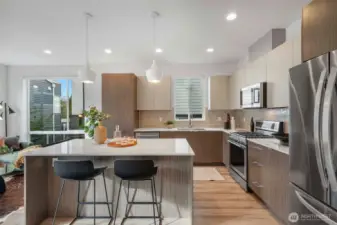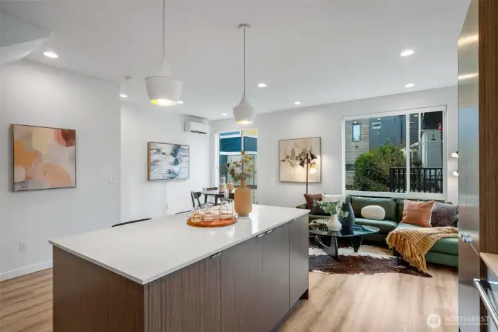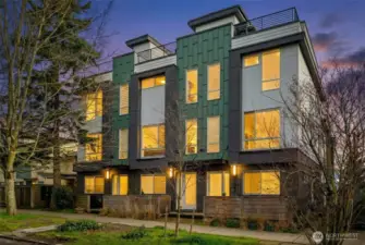 Experience unparalleled urban living in this nearly new, light-filled townhome where privacy meets stunning rooftop views. The main level greets you with floor-to-ceiling windows and a rare, unobstructed layout—allowing you to enjoy afternoon light without looking into a neighbor's window. The thoughtful floor plan offers a quiet entry-level with two bedrooms and a full bath. The second level is dedicated to an airy, open-concept Great Room anchored by a chef-ready kitchen island. Retreat to the top floor with a dedicated primary bedroom, walk-in closet and spa-inspired ensuite bath. Crowning the home is a private rooftop deck featuring rare vistas of the both the Seattle and Bellevue skylines, framed by the majestic Cascades and Mt Rainier. Complete with mini-split A/C and off-street parking, you’re tucked away in a peaceful enclave just minutes from the electric energy of Capitol Hill’s Pike/Pine corridor with easy access to grocery, dining and transit.