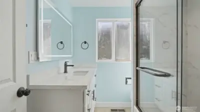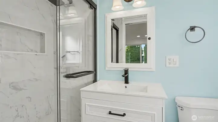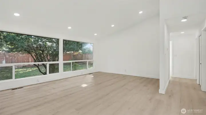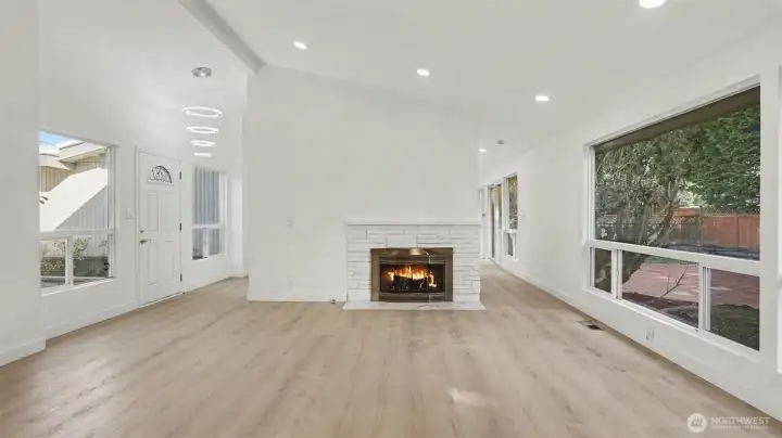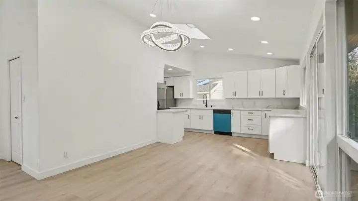 Nestled in the highly desirable Newport Hills community, this beautifully remodeled light-filled rambler blends comfort, style, and everyday convenience. The open layout offers 1,470 square feet of inviting living space with three bedrooms and 1.75 baths, designed for effortless living and entertaining. A stunning chandelier at the entry and an elegant crystal LED light over the dining area enhance the home’s refined appeal. Large windows and multiple skylights fill the home with natural light, while brand-new wide plank flooring, modern LED lighting, new interior and exterior paint, and all-new doors create a fresh, contemporary feel throughout. The completely remodeled kitchen shines with brand-new appliances, including a refrigerator, stove, dishwasher, and range hood, while a separate laundry room features brand new washer and dryer for added functionality. A dual wood-burning fireplace adds warmth and charm, and the spacious two-car garage provides everyday convenience. Situated on an expansive 8,400 square foot lot, the fully enclosed backyard and private courtyard off the primary suite offer exceptional outdoor living and entertaining space. Located within the award-winning Bellevue School District: Newport Heights Elementary, Tyee Middle and Newport Senior High, and just minutes to I-405, I-90, parks, shopping, dining, and downtown Bellevue, this home offers the perfect balance of peaceful neighborhood living and easy access to everything the Eastside has to offer.