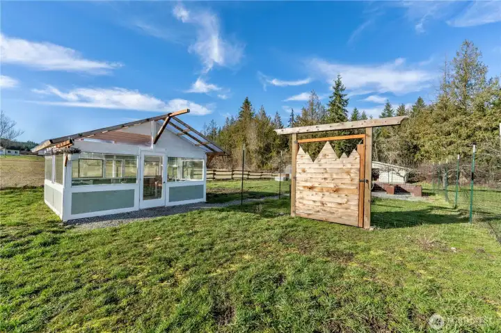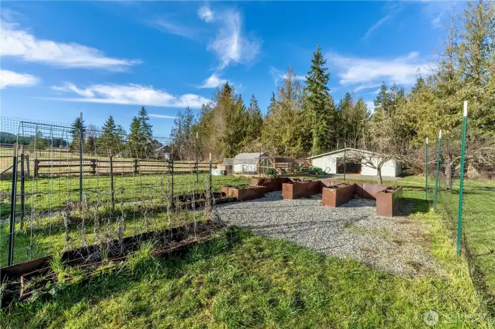 Wake up to mountain views & the quiet satisfaction of truly sustainable living in this special Sequim property. A classic farmhouse anchors the land, welcoming you with a wrap-around covered porch that practically begs for morning coffee & sunset unwinding. Inside, nearly 2,500 square feet of warm, comfortable living space offers solid wood floors, an updated kitchen, & room to gather, spread out, & settle in. Located on five sunny, south-facing acres, the land is thoughtfully set up for those dreaming of a slower, more intentional lifestyle. Garden beds are ready for spring planting, a spacious greenhouse waits for seedlings (two apple & one cherry tree provided), & a fenced organic garden is already in place. The chicken coop can accommodate 30+ chickens, & a 2,500-gallon rain-catchment system supplies water to the coop and drip lines for the garden and greenhouse—smart, efficient, & sustainable. For equestrian or outdoor enthusiasts, the barn features two stalls & a tack room, while the end of Olson Road opens directly to thousands of acres of DNR land & trails—ride, roam, or wander to your heart’s content. Behind the home, wooded paths wind through the trees, leading to a darling treehouse where imagination runs wild & childhood memories are made.