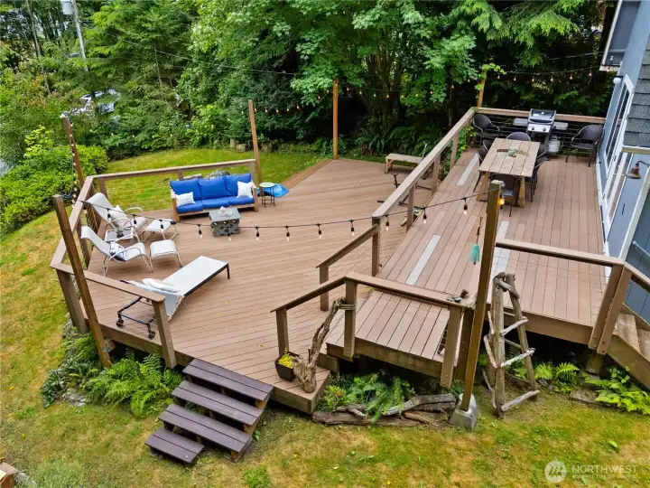 Welcome to your real-life Chutes & Ladders adventure on tranquil Guemes Island! Entertain effortlessly on the expansive composite deck with ample seating, BBQ, and a playful slide down to the inviting fire pit. Easy-care landscaping means more time to relax and enjoy island life. Fresh updates include new windows, flooring, washer/dryer, French drains, and a modern septic system (2017). Offered fully furnished—your island escape awaits! Just steps from Long Bay community beach with stunning views of Mount Baker, foothills, and islands. Enjoy deeded access to two additional beaches—launch your boat from Cook's Cove or relax at sheltered Deadman's Cove.