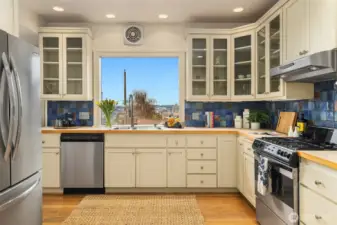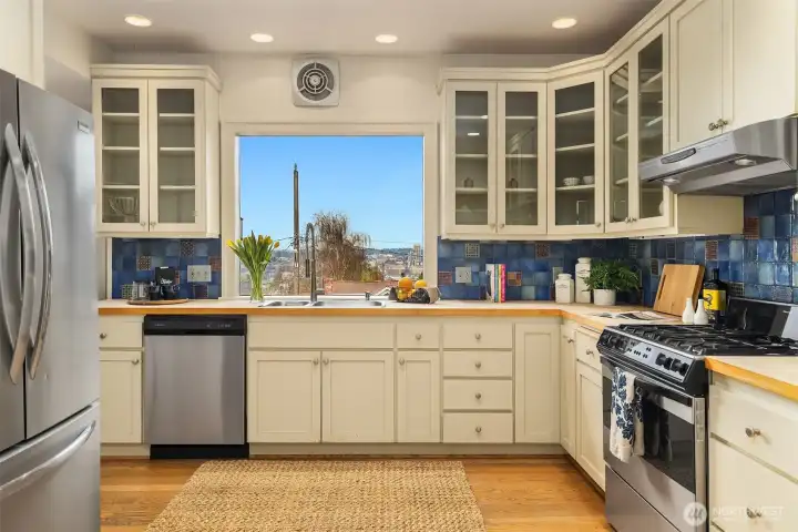Classic 1914 Foursquare on a quiet North Capitol Hill street, blending timeless charm with modern comfort and amazing views. Enjoy sweeping vistas of Lake Union, Lake Washington, and the full mountain lineup from the Olympics to the Cascades. A short walk to neighborhood parks, this 4-bedroom, 2.5-bath home sits on a 4,000 sq ft lot and offers a rare two-car garage with flex outdoor space above and potential to build up, plus a fully fenced front yard—perfect for BBQs, entertaining, and pets. Hardwoods run throughout the home, complemented by fresh interior paint and new carpet. High ceilings enhance the sense of space and light. The main floor features a charming den/office, a cozy fireplace, an open flow from the kitchen to the dining room, and a bonus library-sitting room—ideal for reading, relaxing, or hosting intimate gatherings. Unfinished basement with 7' ceilings with great potential. Bring your vision and there are endless opportunities! Upstairs, the spacious primary suite includes an ensuite bath and sweeping views of the lakes and mountains. A full second bath serves the additional three bedrooms. The unfinished basement is a blank canvas ready to become a media room, gym, or additional living space. A special opportunity to own a classic Capitol Hill home with iconic views, a sought after street, and future potential.