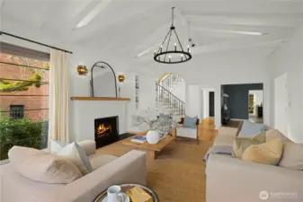 Just a five-minute walk to Laurelhurst Beach Club, the "Villa on the Hilla” evokes the romance of a European Lifestyle with its charm and excellent craftsmanship. Built in 1936 by renowned Seattle Designer/Builder Gardner J. Gwinn, this home encapsulates his theory that livability and beauty are equally as important as quality materials and sturdy construction. Thick hand-laid stone walls, red tile roof, arched openings, Juliet Balcony, and floor to ceiling windows stand proudly on a quiet corner lot surrounded by beautiful gardens and a breathtaking view of Mt. Rainier. Inside you are transported by the sun filled rooms, the high beamed ceilings, stunning inlaid hardwood flooring, and rapturous window views. A wrought iron railing leads gracefully to the upper floor. The circular floor plan lends itself to great entertaining with a chef’s utilitarian kitchen, a dining room, a powder room along with a coveted main floor sunny bedroom. Quiet luncheons or dinners on the Southwest facing outdoor deck, surround a seating area for conversations around the gas fired fireplace and glittering view of Lk. Washington. Experience the updated classicism of this truly beautiful home.