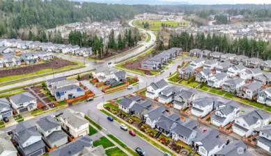 Located in the highly desirable Tehaleh community, this 3 bedroom home offers an open-concept floor plan and well-appointed designer finishes throughout. The kitchen is the true focal point featuring espresso finished 42" upper cabinets and pearl quartz countertops with spacious breakfast bar. Tall 9-foot ceilings paired with extra windows create a bright and airy atmosphere filled with natural light. Tankless water heater, A/C and fully fenced are just some of what this home has to offer. Located within the Sumner- Bonney Lake School District. Enjoy miles of scenic trails, parks and playgrounds, Tehaleh is a community designed to support connection comfort and long-term living.
