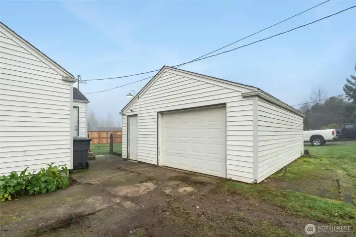 Welcome to this charming, move-in-ready 2-bedroom, 1-bath home featuring a detached garage and a large corner lot with DADU potential. Surrounded by newly built homes, this property offers excellent upside and long-term value. The living room is filled with natural light from a skylight, creating a bright and welcoming space. Inside, enjoy a bonus carpeted attic area—perfect for a private retreat, office, or flex space. Recent updates include new kitchen flooring, durable vinyl siding, and a newer water heater, and the home comes complete with all appliances. Ideally located just minutes from I-5, Hwy 18, shopping, dining, and everyday conveniences. Plus, enjoy the added benefit of no HOA!