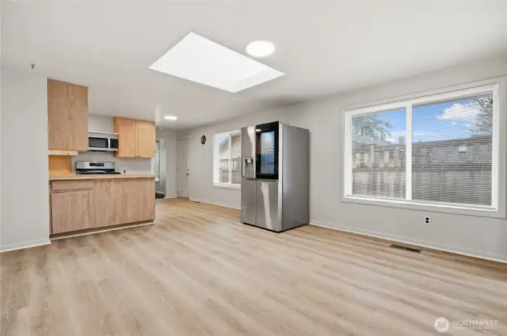 Beautifully updated West Seattle charmer, ready for everyday living and easy entertaining. This spacious, light-filled home features a large north facing ventilated skylight and two tubular sun tunnels that brighten the upper level—ideal for a sunny reading nook, home office, or play area.Recent updates include a heavy wind-rated composite shingle roof, fresh interior paint throughout (including the attached 2-car tandem garage w/epoxy-painted floor), and stylish new plank flooring in the kitchen, dining area, upstairs bedroom, lower bath, and laundry room. The kitchen shines with all new appliances, including a gas stove with large griddle burner that’s perfect for everything from weeknight meals to weekend gatherings. A clever hidden storage pantry above the basement stairway adds extra space for staples, small appliances, or bulk items. Enjoy energy-efficient LED lighting in every room, with dimmable recessed fixtures in the living area to set the mood for movie nights or quiet evenings in.The fully fenced backyard offers a great blend of patterned concrete patio for outdoor dining and a grassy area that works well for gardening, pets, or casual play. There’s plenty of parking for residents and guests, including additional spots in front of the home.Conveniently located near parks, schools, shopping, and easy commuter (2x bus) routes, this property balances comfort, functionality, and modern appeal in one inviting package. Move-in ready and waiting to welcome you home