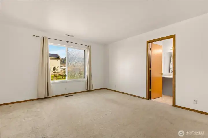Welcome home to this spacious rambler in Orting’s Village Green. A large, open living area greets you upon entry, creating a comfortable and inviting space for everyday living and entertaining. Enjoy year-round comfort with air conditioning for warm summer days and a newer furnace for the colder seasons. Recently installed solar panels offer significant savings on utilities, while the roof and water heater have both been replaced within the last five years, giving peace of mind with the major systems already addressed. With the big-ticket items taken care of, this home offers the perfect opportunity to add your own cosmetic updates and personal touches. The primary bedroom features an ensuite bath and walk-in closet, complemented by two additional bedrooms and a conveniently located main bath. Located just down the block from the community park and within walking distance to the Orting Trail and downtown Orting, this home also sits near the golf course and provides easy access to Highways 410, 512, and 167 for a smooth commute. Don’t miss this wonderful opportunity to make this home your own.