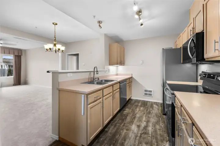 Welcome to easy living in Highland Village at Providence Point, one of Issaquah’s most sought-after 55+ communities. This rare ground-floor residence offers level entry and the everyday convenience of an attached private garage, making access effortless for groceries, guests, and daily life. Inside, a spacious and thoughtfully designed 2-bedroom floor plan provides comfortable living and entertaining areas filled with natural light. The primary bedroom flows seamlessly to a private patio, perfect for morning coffee, container gardening, or relaxing afternoons. The kitchen has been refreshed with new appliances and updated lighting, creating a clean and functional workspace for everyday cooking. The generous primary bedroom features a large walk-in closet with a separate vanity area. A well-sized second bedroom works beautifully for guests, hobbies, or a home office. Recent improvements include new carpet, fresh interior paint, new kitchen appliances, water heater, lighting fixtures, and ceiling fan —allowing you to move in and enjoy immediately without the worry of major updates. Beyond the home, Providence Point offers an unmatched active lifestyle. Residents enjoy 24-hour gated security, clubhouse, indoor pool, fitness center, garden plots, scenic walking trails, and social events that make it easy to stay connected and engaged. Use 22519 SE 38th Terrace Issaquah WA 98029 for navigation. (including the unit number will direct you to the wrong building)