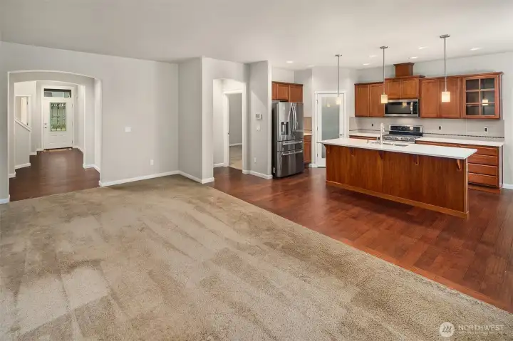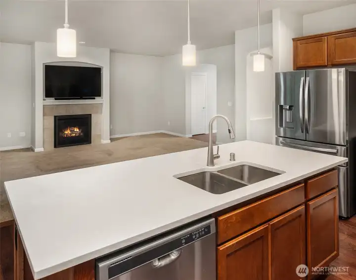 Better-than-new 5-bedroom, 3.5-bath Rob Rice home offering 2,611 sq ft of refined suburban living. Designed for comfort and entertaining, this light-filled residence features an open, spacious layout ideal for gathering, relaxing, and everyday living. The main level includes a private ensuite bedroom with full bath, perfect for guests or multigenerational living. The chef’s kitchen showcases rich Caraway-stained beech cabinetry, stainless steel appliances, and modern brushed nickel accents, blending warmth with contemporary elegance. Generous living and dining spaces flow seamlessly to the fully fenced yard, creating an inviting indoor/outdoor lifestyle. Upstairs, the expansive primary suite offers a true retreat with a luxurious five-piece bath and oversized walk-in closet. Three additional bedrooms provide flexibility for work, play, or rest. Situated on a 3,800 sq ft lot in a desirable neighborhood setting, this meticulously maintained 8-year-old home features a recently serviced furnace and timeless finishes throughout. Experience elevated suburban living with comfort, style, and convenience at every turn.