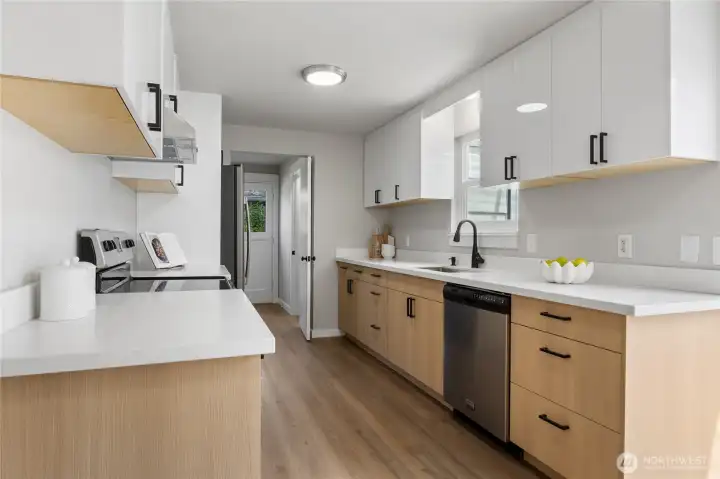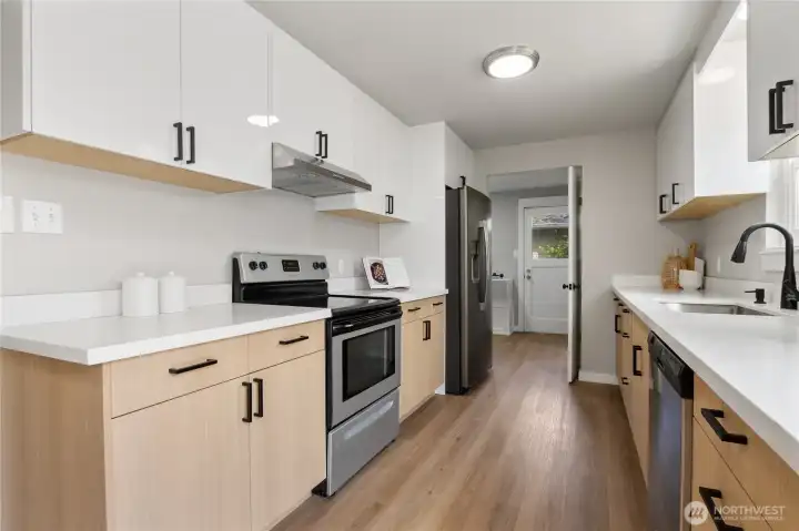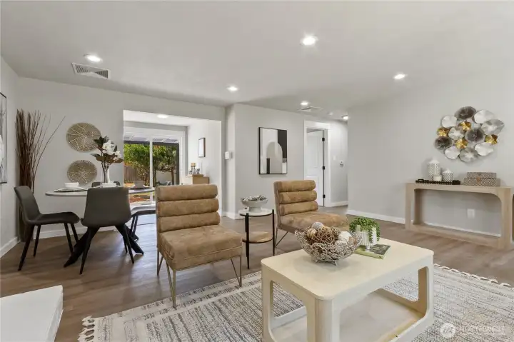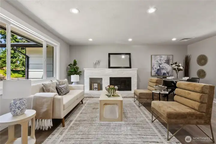 Beautifully remodeled 4-bedroom + den/office, 2-bathroom rambler with modern touches & endless potential that seamlessly blends modern design with cozy charm. Enter into the spacious, light-filled living room highlighted by a wood fireplace. Brand-new, modern kitchen featuring sleek European-style cabinetry, stainless steel appliances. Fresh interior and exterior paint complemented by new luxury vinyl plank flooring that flows beautifully from room to room. Recent upgrades, include new roof, electric furnace & hot water heater. Step outside to your expansive, covered patio—ideal for outdoor entertaining or extended living space. Storage room can be used as shop. Potential to build DADU on the back with alley access to 2-car carports.