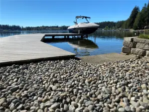 Updated home with no-bank Clear Lake waterfront, private dock & boat lift on an oversized lot — designed for effortless lake living and hosting. This thoughtfully updated 5-bedroom retreat sits on 2/3 of an acre with 52 feet of true no-bank shoreline, offering easy water access for swimming, floating, kayaking, fishing, and boating right from your backyard. The large lot provides privacy, extensive parking, and space for guests to enjoy both indoors and out. The home was extensively renovated in 2016, including the kitchen (quartz counters, eating bar, stainless appliances), bathrooms, flooring, windows, roof, HVAC, fixtures, paint, deck, dock, boat lift, sprinkler system, and outdoor shower — making this a turn-key lake property rather than a project. With five bedrooms and a flexible layout, the home comfortably accommodates friends for weekends, holidays, or extended stays, while the open living areas flow naturally to outdoor spaces overlooking the lake. Whether hosting BBQs or relaxing on the deck, watching bald eagles soar, or ending the day by the water, this home is built for memorable gatherings and low-maintenance enjoyment. Ideal as a full-time residence or a low-stress vacation home on one of Washington’s most desirable recreational lakes. Voluntary HOA ($200/yr). Appx 25 minutes to Puyallup and under an hour to Mount Rainier. An exceptional opportunity to own Clear Lake waterfront — without the price tag or complexity of a $2M lake estate.