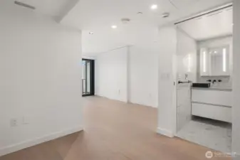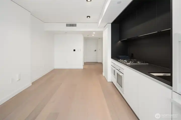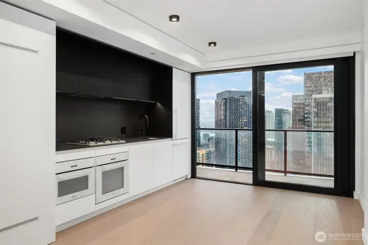 Best-priced, brand new unit in the building with iconic northwest-facing water views. This unit offers an open, efficient layout with a private oversized balcony extending the living space, and floor-to-ceiling, triple-paned windows capturing the Space Needle, Elliott Bay, and the Olympic Mountains, delivering dramatic sunsets and city-water views. Interiors feature custom B&B Italia cabinetry, Kohler fixtures, Miele appliances with gas cooktop, motorized blinds, keyless entry, in-unit washer & dryer and wide-plank hardwood flooring throughout. Low HOA dues complement a thoughtfully designed luxury residence. Residents enjoy access to the 46th, 47th and 48th floor amenities, including a 25-meter cantilevered rooftop sky pool, two hot tubs, rooftop garden, state-of-the-art fitness & wellness center with yoga studio, spa, bike lounge, pet play and grooming areas, rooftop entertaining spaces, and a resident lounge. Parking available for purchase for additional $100,000 (Space #189). An exceptional opportunity for those who value views, design, and luxury.