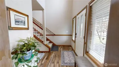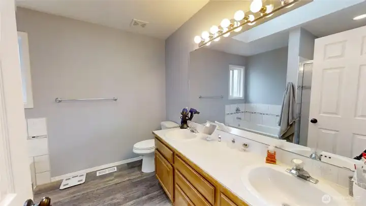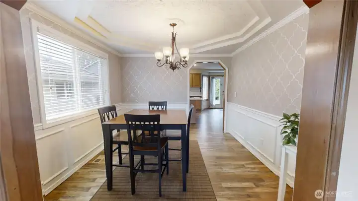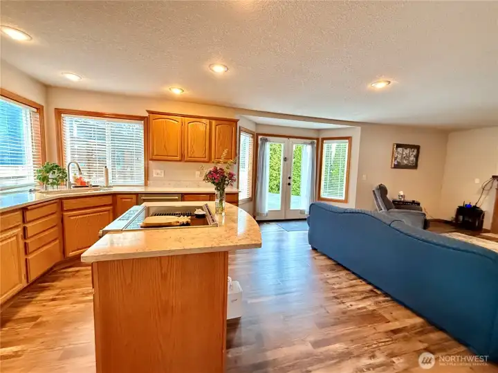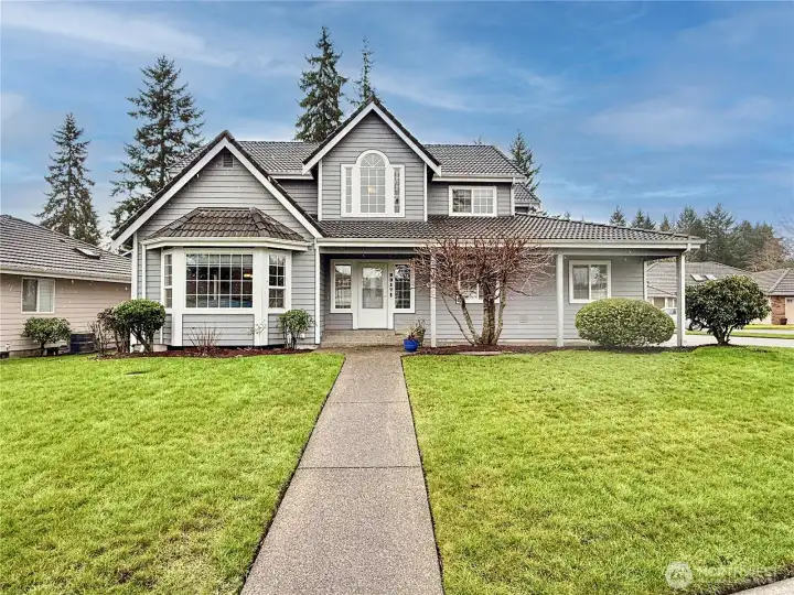 Beautiful 4 bedroom home on a quiet cul de sac in Campus Park. You're welcomed by a covered walkway leading to the front door. Inside the home you are met with a vaulted entry and new luxury vinyl plank flooring. Wood wrapped windows and walkways throughout the home. Traditional main floor layout offers a vaulted formal living room, formal dining room with tray ceiling and wainscoting, and open concept kitchen and family room. Kitchen has been updated with quartz counters and stainless steel appliances. Center island with cooktop allows for eat in dining and is great for entertaining. Family room includes gas fireplace and french doors to the backyard. A spacious powder room and the laundry room complete the main level. Upstairs you will find 3 generous guest bedrooms and guest bath with skylight, plus the primary suite. Primary suite offers plenty of space for a king bed plus all of your bedroom furniture, a walk in closet, and a 5 piece en suite bathroom with soaking tub and separate shower stall plus dual sink vanity. Outside the home you can enjoy outdoor living in the backyard on the extensive composite deck with built in privacy fencing Small grassy area is low maintenance and perfect for pets or play area. 3 car garage and large driveway offer plenty of parking and storage space. Year round heating and cooling comfort provided by the heat pump.