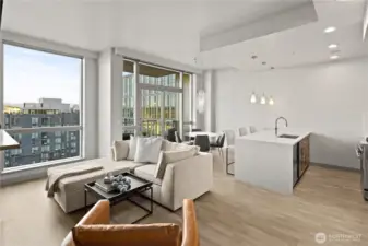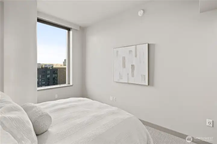 Live the luxurious urban life in this sophisticated sub-penthouse condo in the heart of downtown Bellevue. Enjoy stunning views of the snowcapped Cascade Mountains through floor-to-ceiling windows while entertaining in the updated kitchen featuring waterfall quartz countertops and Fisher Paykel appliances. The sleek layout includes a primary bedroom with walk-in closet, a recently remodeled luxury bathroom, and a spacious office or second sleeping area ready for guests or a home-based business. This excellent investment property was completely updated in 2023 and includes three parking spaces and private garage storage in the sought-after Washington Square Towers, offering 24-hour concierge and security, fitness center, and spa. Enjoy lock-and-leave living in the center of it all.