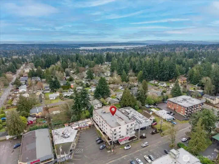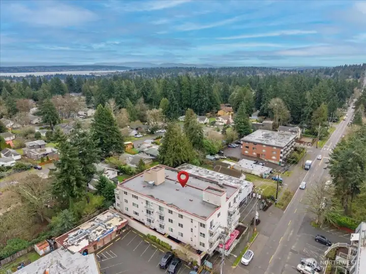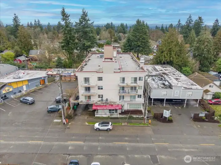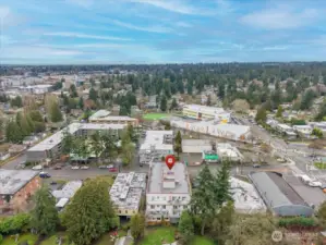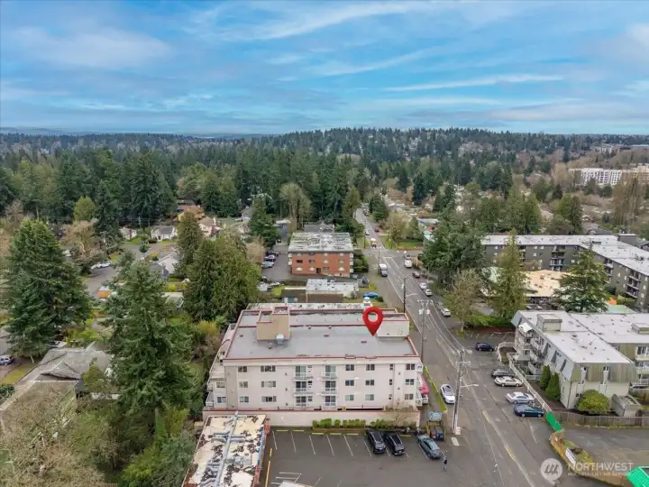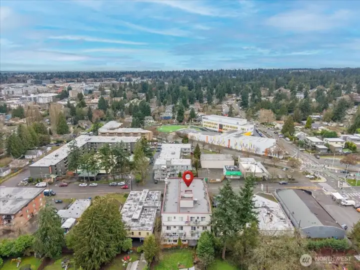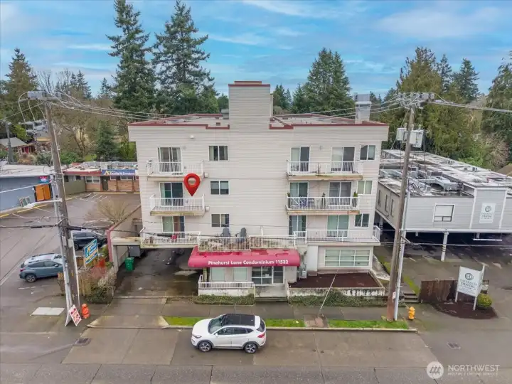 Easy living at its core: Bright and beautifully updated two-bedroom condo in Seattle’s Pinehurst/Lake City neighborhood. Conveniently located near shopping, dining, transit, and everyday amenities, this third-floor home offers zero stairs from entry thanks to elevator access. Perched above the surroundings, the unit enjoys a pleasant outlook and abundant natural light throughout. Features a smart, functional layout with spacious living and dining areas ideal for both relaxing and entertaining. Large windows bring in abundant west-facing light, while the private balcony offers a perfect place to unwind, enjoy afternoon sun, or catch evening sunsets. The kitchen and finishes have been nicely updated, blending modern style with everyday practicality. Both bedrooms are well-sized, with plenty of closet space. Also includes in-unit laundry room and an exceptional amount of storage throughout. Secure parking and additional storage provide convenience and peace of mind. This condo offers comfort, light, and location—an ideal place to call home.