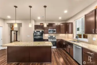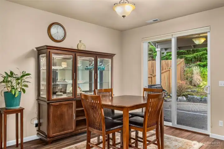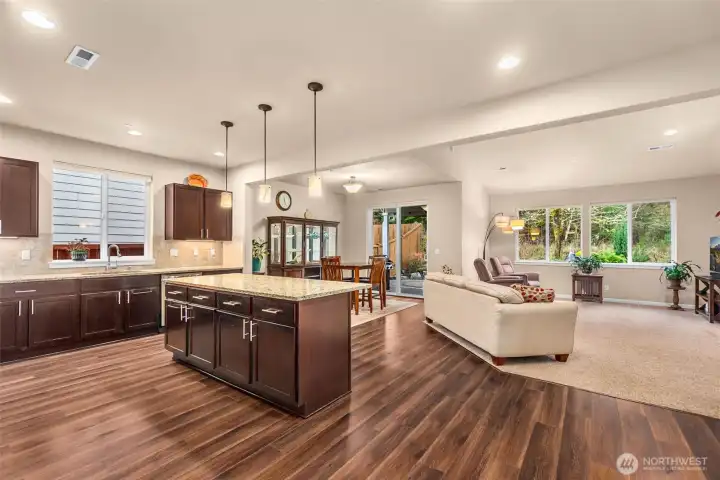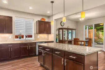 Step into effortless, single level living in this meticulously maintained, 3 bed, 2 full bath rambler. As you enter, the view out the windows to the back yard and fountain with captivate you. Designed for modern lifestyles, the wonderful, open-concept floor plan connects the stylish kitchen directly to the light and bright living and dining areas. Don't miss the hard wired, under cabinet lighting in the kitchen for nighttime ambiance. Utilizing a slider from the dining area, you can access the covered back patio with pine accent. The patio is plumbed for your gas BBQ perfect from summer parties. The private oasis of a backyard features a drip irrigation system and a relaxing fountain. Retreat to the spacious primary suite a private bath. The extra-long tub is something the seller is going to miss. Located in a prime neighborhood, close-in on the Westside. Handy location to anything you'll ever need! Schools are all close by as well. Come and see this move-in ready gem today.