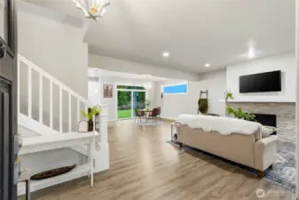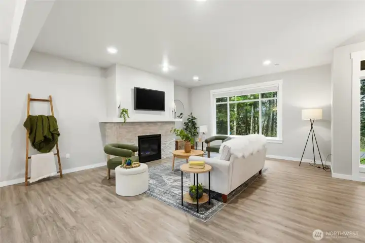 Tucked against a backdrop of evergreens and sweeping mountain views, this stunning Northwest retreat sits on a peaceful 5-acre lot and blends modern comfort with everyday adventure. The light-filled, open-concept main level features wide plank floors, a stone-wrapped fireplace, and seamless flow into a chef-inspired kitchen with quartz counters, large island, stainless appliances, and abundant storage—ideal for entertaining or cozy nights in. Upstairs, spacious bedrooms and a spa-like primary suite offer dual vanities, an oversized shower, and a generous walk-in closet. Step out back to a covered patio and private hot tub, where you can unwind while taking in serene views of the mountains and Wallace Falls. Enjoy year-round comfort with A/C, hiking right out your back door, and world-class skiing at Stevens Pass just a short drive away. A rare opportunity where nature, privacy, and refined living meet.