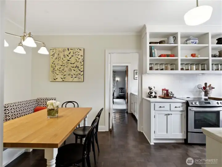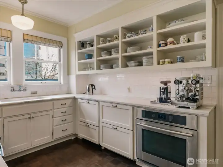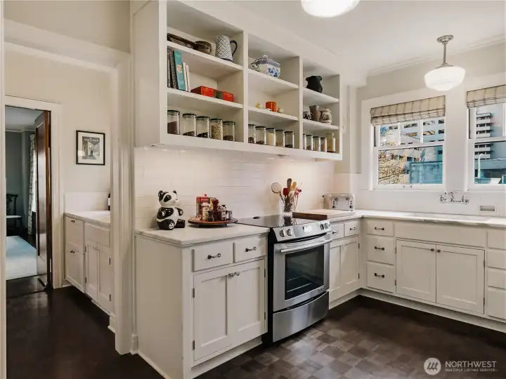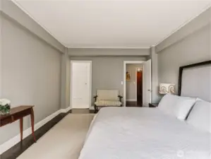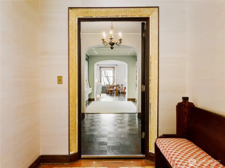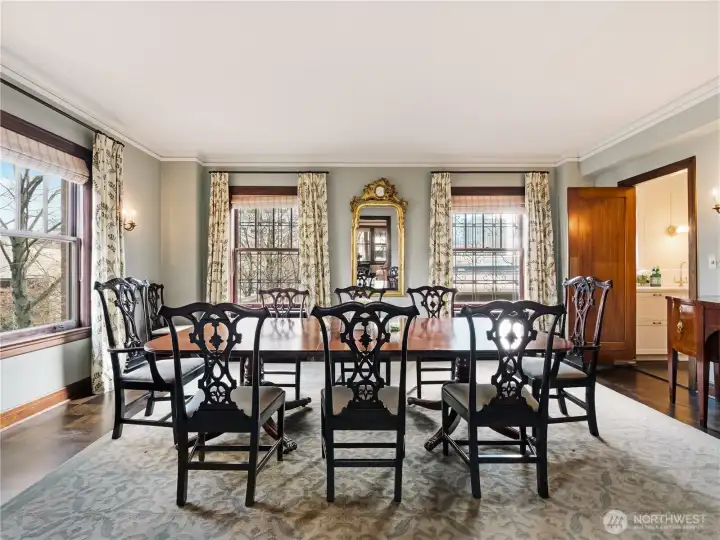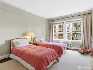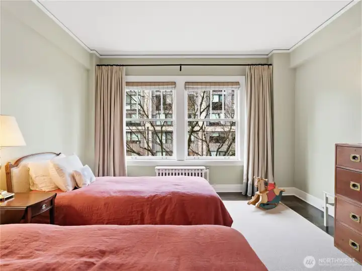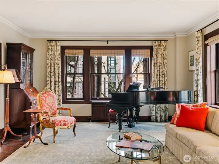 Welcome to the iconic 1929 First Hill residence at 1223 Spring Street, designed in the Beaux-Arts tradition and thoughtfully preserved for modern living. Spanning 2,285 square feet, Unit 300 is meticulously maintained, reflecting the craftsmanship of its era where generous proportions, refined detailing, and intentional design define daily life. A gracious entry gallery introduces expansive living and dining spaces, ideal for both quiet evenings and formal entertaining. A beautifully updated modern kitchen with breakfast nook is complemented by a rare preparation pantry and wine bar, honoring the home’s original design while supporting contemporary living. The spacious primary bedroom boasts custom built-ins and a 5-piece en suite bath. Large guest room, 2 additional full baths, and a versatile flex space, currently arranged with an en-suite daybed, offer comfort and flexibility. Windows with custom treatments invite soft natural light across the home’s bespoke designed interiors. Period-inspired details blend seamlessly with thoughtful updates. Originally constructed to serve Seattle’s most discerning residents, the building continues that legacy with secure garage parking for two vehicles, controlled building access, and professional security. Moments from downtown, medical centers, parks, and neighborhood cafés, this is a rare opportunity to own a piece of Seattle’s architectural heritage where scale, permanence, and quiet sophistication endure.