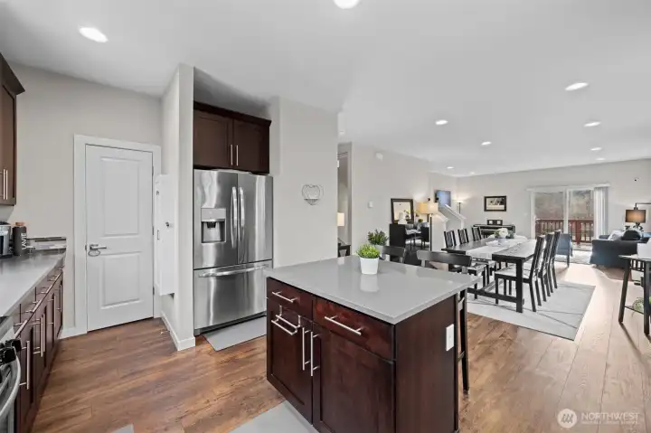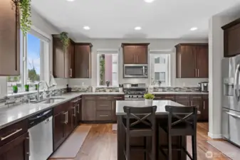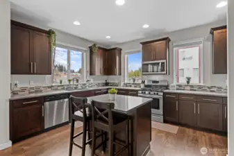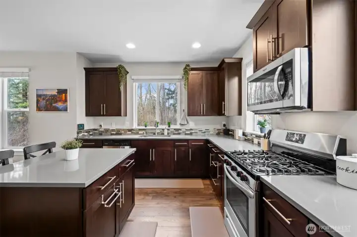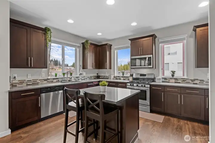 Rare end-unit townhome built in 2018 with 2-car garage and EV charger in a quiet, well-maintained community. This light-filled home features an open-concept main level with quartz countertops, stainless steel appliances, and seamless flow to the dining and living areas — ideal for everyday living and entertaining. Enjoy a private deck and covered outdoor green space, plus a flexible lower level perfect for guests, home office, or multi-generational living. Recent upgrades include fresh interior paint, new appliances, water heater, custom built-ins, upgraded shelving, blackout blinds, and smart thermostats. Community amenities include playground, basketball court, picnic areas, and open green space. No rental cap offers excellent flexibility for homeowners and investors alike. Conveniently located near shopping, dining, parks, and quick access to I-5, I-405, and Alderwood. Impeccably maintained and truly move-in ready.