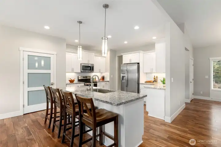 Welcome home to this inviting, like-new single-story residence set on a beautiful 1.08-acre lot in the peaceful community of Olalla. Designed with comfort and ease in mind, this home offers 3 bedrooms, a dedicated office, and 2 full bathrooms, all thoughtfully laid out on one level. The open floor plan is perfect for everyday living and easy entertaining. The kitchen features granite countertops, ample cabinetry, and flows seamlessly into the main living spaces, while engineered hardwood floors add warmth and durability throughout. The spacious primary suite includes a private bath and generous closet space, with two additional bedrooms and a second full bath offering flexibility for guests or hobbies. The separate office provides the ideal space for remote work or a quiet retreat. Enjoy year-round comfort with a heat pump, plus the added peace of mind of being wired for a generator. The three-car garage offers plenty of room for vehicles, storage, or projects, and covered RV parking adds even more versatility. Step outside and take in the privacy and tranquility Olalla is known for—ample space to garden, play, or simply relax and enjoy the natural surroundings. All this while staying conveniently close to local amenities and waterfront activities. A peaceful setting with easy access to the Southworth Ferry (including fast ferry service to Seattle), Highway 16, and just minutes to Olalla Bay Market and Olalla Vineyard, known for seasonal outdoor concerts.