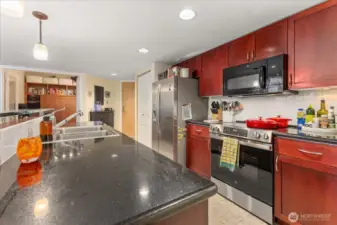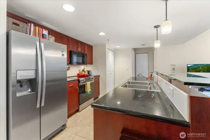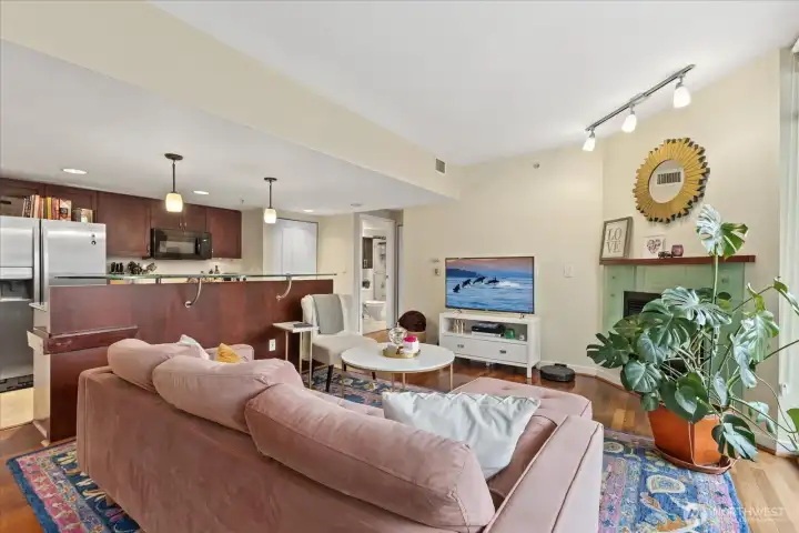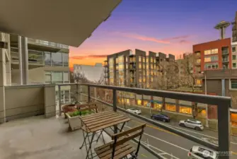 Luxury Condo in First-Class Belltown building - The Concord. Wake up with the Space Needle just outside your bedroom window. Home features a den with French door entry and built-in fold-down bed, as well as spacious private deck for grilling. The open-concept living area has good natural light and features hardwood floors, a gas fireplace, and rare Central A/C for year-round comfort. Gourmet kitchen includes solid slab granite counters and a bar island designed for hosting. Great location in the quieter North end of Belltown, near restaurants and shops. Close to Olympic Sculpture Park, Seattle Center, Climate Pledge Arena, Pike Place Market & the revitalized Waterfront. Enjoy luxury resort-style amenities at this steel & concrete landmark, including 24/7 concierge, spa, sauna & jacuzzi, fitness room, owner's lounge, business center, 6th floor deck with Puget Sound views, and 2nd floor garden with BBQ grills. There’s even a guest suite for your visitors.1 secure parking spot in the garage & 1 secure storage unit. HODs include water, sewer, garbage & gas. Hurry, this one won’t last!