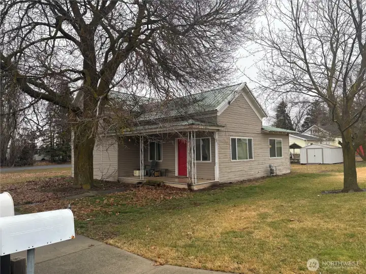 Fixer opportunity. This house has so much potential. Sitting on an oversized corner lot, the house offers 2 bedrooms, an open layout for the kitchen, dining and living area. Main level has one bedroom and full bathroom with an additional bedroom on the 2nd level. From the kitchen there is a generous sized laundry area leading to a covered back porch. The partial basement in accessed off the covered porch. The lot offers plenty of room to add a shop.