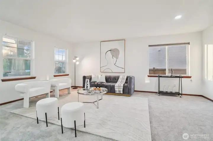 Discover your dream home with stunning mountain views in Orting's River's Edge community! This spacious 4-bedroom + Office/Den, 2.5-bathroom home offers a quiet neighborhood setting and modern updates. The interior features a built-in surround sound system, new luxury vinyl and carpet, fresh paint, and a new skylight. With tons of storage, this home is both comfortable and functional. For added convenience, the laundry room is located on the second floor, right by all the bedrooms. Recent upgrades for peace of mind include a roof less than two years old and a new water heater. The private, fully fenced yard with a new double-gate lock entry provides a secure space for outdoor enjoyment. There's even RV/trailer parking behind the gate