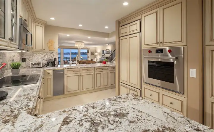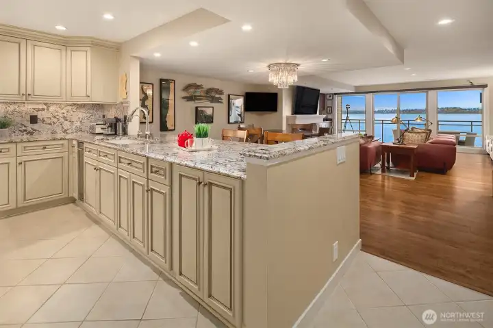Where else can you “OWN WATERFRONT,” have your own boat slip, and be walking distance to Downtown Kirkland for this price? Welcome to an exceptional boutique residence—extensively remodeled—within a gated building of just 9 homes. Enjoy a surprisingly private, quiet setting with a wonderful cross breeze that makes the home feel fresh and airy. Step inside to sweeping panoramic views of Lake Washington, the Olympic Mountains, and the glittering Seattle skyline after dusk. The thoughtfully designed two-level floor plan offers 2 bedrooms and 2.5 baths, including a spacious primary suite with a stunning, luxurious bath featuring heated floors. The classic kitchen features exceptional-quality, timeless French Baroque-style cabinetry, while hardwood flooring anchors the main living and dining spaces. Step out to a generous balcony—perfect for outdoor entertaining and sunset watching. A deeded boat slip with a new lift is included, 3 parking spaces, 2 of which are secured in a covered & gated parking garage, an additional uncovered space, and dedicated storage.