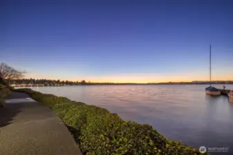 Remodeled by renowned architect Jim Olson of Olson Kundig, this exceptional Lake Washington condominium showcases his signature attention to fine millwork, paneling, and timeless design. Situated at the water’s edge, this rare single-level residence offers unobstructed views of Lake Washington, the Olympic Mountains, and the surrounding city skylines. The thoughtfully renovated kitchen, living, and dining spaces flow effortlessly together, creating an airy, light-filled environment with a seamless connection to the water beyond. A generous primary suite features an expansive walk-in closet and front gated yard for your pup, complemented by a second bedroom and bath. Additional highlights include a dedicated utility room and a separate mechanical room. Enjoy remarkable privacy while remaining just minutes from premier amenities. A comprehensive exterior refresh was just completed by the HOA, enhancing both curb appeal and long-term value. An exceptional home whose quality and presence are best appreciated firsthand.