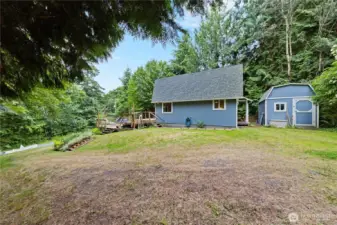 Welcome to your real-life Chutes & Ladders adventure on tranquil Guemes Island! Entertain effortlessly on the expansive composite deck with ample seating, BBQ, and a playful slide down to the inviting fire pit. Easy-care landscaping means more time to relax and enjoy island life. Fresh updates include new windows, flooring, washer/dryer, French drains, and a modern septic system (2017). Offered fully furnished—your island escape awaits! Just steps from Long Bay community beach with stunning views of Mount Baker, foothills, and islands. Enjoy deeded access to two additional beaches—launch your boat from Cook's Cove or relax at sheltered Deadman's Cove.