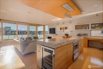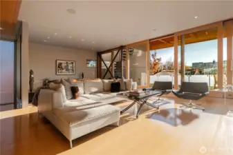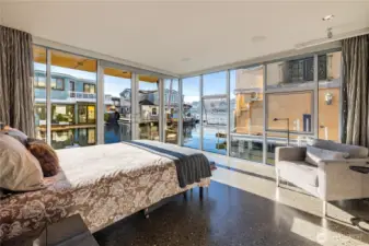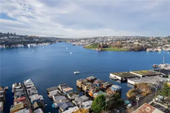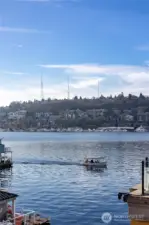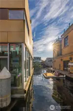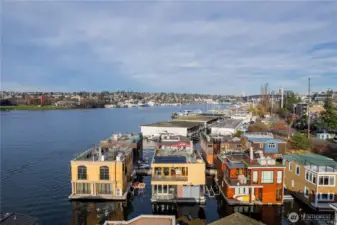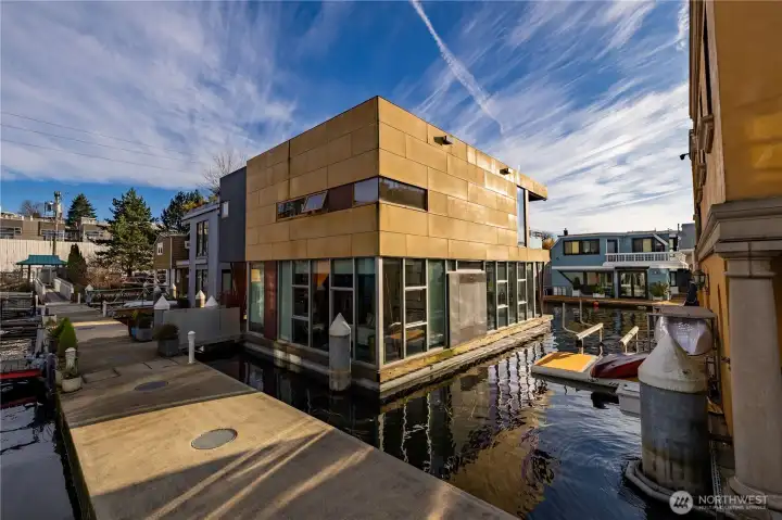 A stunning modern floating home by Vandeventer + Carlander Architects w/ sought after southern exposure on highly desirable dock is intentionally crafted to immerse you in its waterfront setting w/ sweeping views of Downtown Seattle, Olympics & Space Needle. Four levels of living including a roof top & basement w/ actual porthole windows, this home's sculpted form plays w/ light & perspective, offering both openness and privacy while maintaining a deep connection to the water. Features include a gated community, three view decks, a primary suite, two additional bedrooms and baths, an underwater lower level, solar power and parking. Dedicated parking space in gated lot and boat moorage along shoreside of home with remote control boat lift.