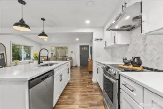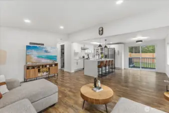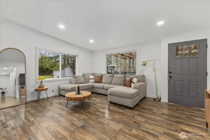 Welcome home to this beautifully updated 3-bedroom, 2-bath set on a private, 1-acre lot with mature trees, garden space, and plenty of parking, including RV parking and room for all your toys. This light-filled, open-concept layout offers easy main-floor living and feels larger than its 1,150 sq. ft. Step inside to laminate flooring, fresh interior paint, new windows, and custom hardware and light fixtures throughout. The stunning kitchen is designed for both style and function, featuring quartz countertops, a waterfall-edge island, white cabinetry with black hardware, stainless steel appliances, and a custom chevron tile backsplash. Bathrooms are tastefully updated with quartz counters, tile surrounds, and modern finishes. The spacious primary suite includes a walk-in closet and a beautifully refreshed private bath. Relax or entertain outdoors on the covered deck or around the fire pit in the expansive backyard. Conveniently located within the city near shopping, dining, major highways, Lake Wilderness parks and trails, and in the highly desirable Tahoma School District, offering space, comfort, and everyday convenience in one exceptional property.