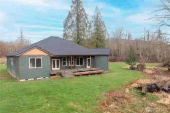 Set on five flat, sun-filled acres, this nearly new single-story home offers the perfect blend of comfort, privacy, and space. Featuring 4 bedrooms plus an office, 2.5 bathrooms, and nearly 2,800 square feet of thoughtfully designed living space, the home is ideal for both everyday living and entertaining. The expansive Trex back deck includes a generous covered area for year-round enjoyment, overlooking a peaceful, private setting where deer often wander through the property. Inside, enjoy stainless steel appliances, induction stove, double oven, with washer and dryer included, along with forced-air heating and central A/C for year-round comfort. A 40’ x 60’ shop kit is available, with the seller willing to renew the permit if desired. The sun-drenched yard offers endless possibilities—perfect for a hobby farm, expanded gardens, or creating your dream outdoor space. The private well completes this exceptional country retreat.